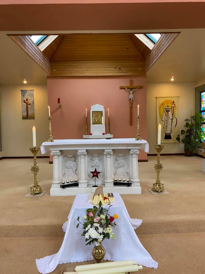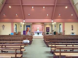 Work started on the church on 22 March 1990 and the foundation stone was officially laid by Dr. Michael Russell, Bishop of Waterford & Lismore in a ceremony on the 30th June 1990. Both the site and foundation stone were blessed by Bishop Russell in the presence of members of Ss. Peter & Paul's parish council, and building and finance committees, as well as the parish clergy including the parish priest, Canon Patrick Queally. 'We are hoping the church will be completed and ready for the Easter ceremonies next year', said Canon Queally.