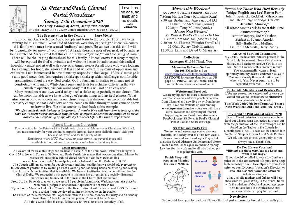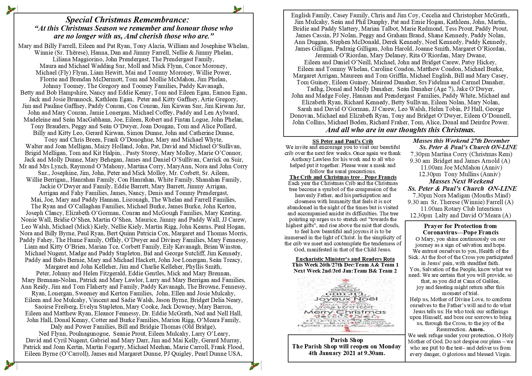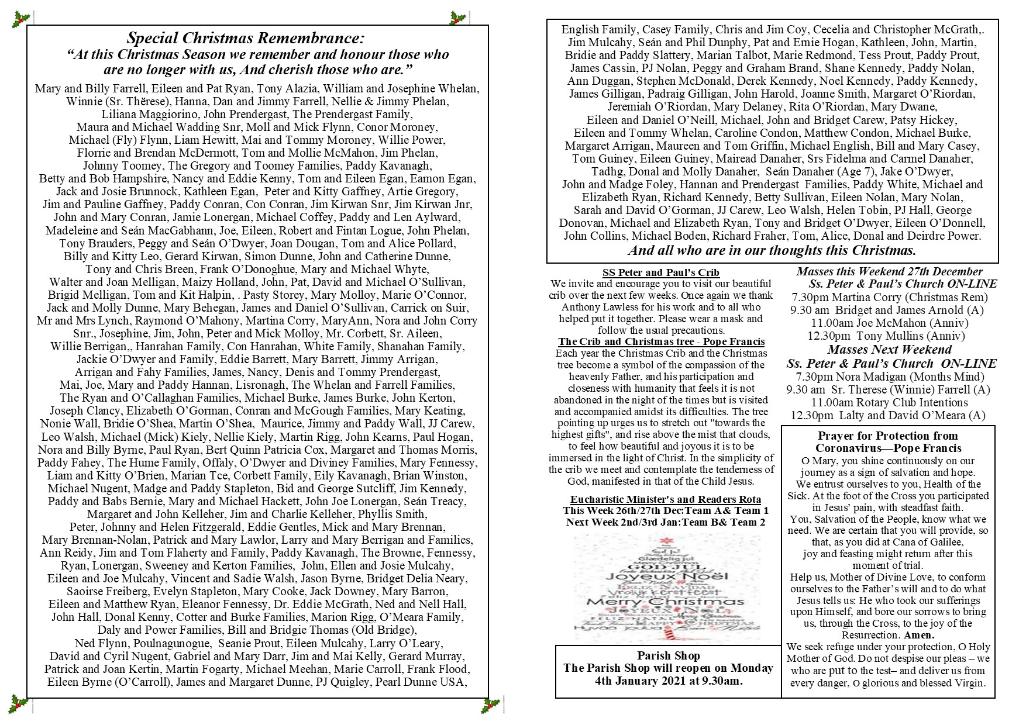 In accordance with Government Guidelines the Parish Shop will be closed to the Public.