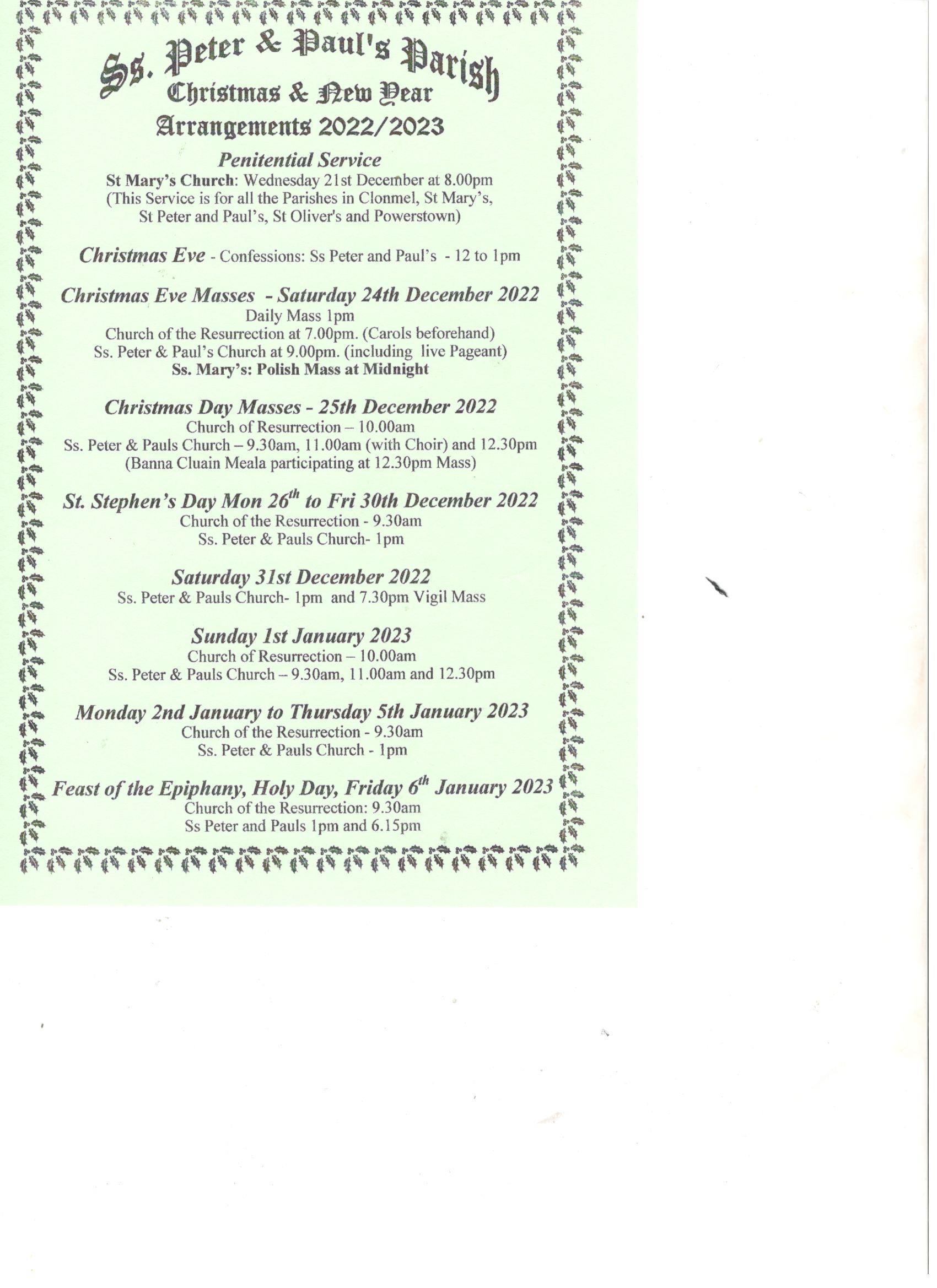 © Copyright SS. Peter & Paul’s Clonmel.